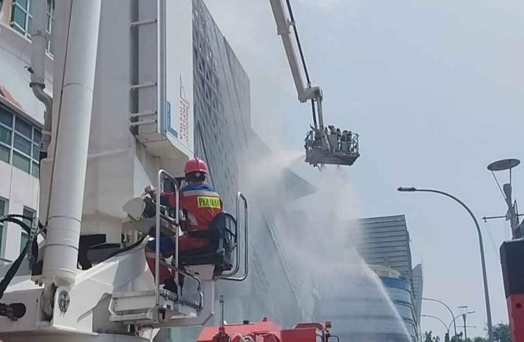 Petugas pemadam kerahkan unit Bronto Skylift di Ruko Mangga Dua Square (Foto: dok. Ist)